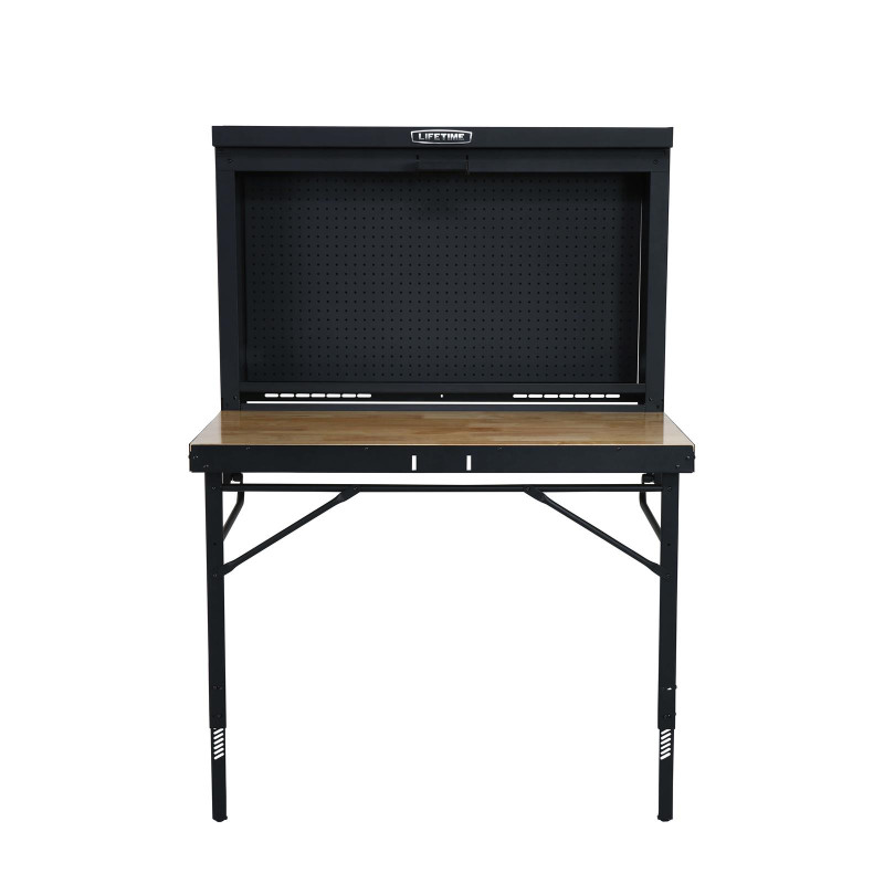 Montowany do ściany stół warsztatowy to doskonałe rozwiązanie do pracy i przechowywania narzędzi. Zapewnia oszczędność miejsca i porządek w warsztacie lub garażu. Posiada szafkę na narzędzia z perforowaną tablicą ułatwiającą organizację. Wyjątkowo solidna konstrukcja zapewnia podwyższoną odporność na warunki atmosferyczne i zabrudzenia. Regulowana długość nóg pozwala dostosować stanowisko robocze do indywidualnych potrzeb użytkownika. ZALETY Wytrzymała, odporna na wilgoć, trwała drewniana powierzchnia blatu Blat roboczy wykonany z twardego, wodoodpornego drewna oraz stalowa rama malowana proszkowo Perforowana wewnętrzna i zewnętrzna tablica z możliwością zawieszenia narzędzi na haczykach Możliwość zamknięcia złożonego blatu na kłódkę i zatrzask Specjalna sprężyna ułatwiajaca składanie i rozkładanie stołu Rama i nogi stołu malowane proszkowo dla ochrony przed rdzewieniem i uszkodzeniami mechanicznymi Regulowana wysokość nóg w zakresie 86 – 106 cm Wysoka stabilność i trwałość Odporny na zabrudzenia i łatwy do czyszczenia, Łatwy w przechowywaniu, składaniu i rozkładaniu, konserwacji i użyciu, Zapewnia oszczędność miejsca i porządek w warsztacie lub garażu 5 lat ograniczonej gwarancji DANE TECHNICZNE Wymiary rozłożonego stołu: 119,3 cm x 78,7 cm x 153,6 – 181,6 cm Wymiary złożonego stołu: 119,3 cm x 25,4 cm x 100,3 – 122,1 cm Wymiary stołu (bez szafki): 119,3 cm x 59,1 cm x 85,5 – 107,4 cm Wymiary wewnętrznej tablicy: 55 x 110 x 16,5 cm (+/- 5 cm) Zakres regulacji: 27,9 cm Grubość blatu: 19 mm Materiał blatu stołu: twarde drewno pokryte warstwą wodoodporną Materiał ramy: stal malowana proszkowo Średnica nogi: 14 mm Średnca ramy: 16 mm Waga stołu: 43,3 kg Maksymalne obciążenie blatu: 68 kg Kolor blatu: jasne drewno lakierowane Kolor ramy: czarny UWAGA: Zestaw nie zawiera prezentowanych na pierwszym zdjęciu narzędzi. PONAD 25 LAT DOŚWIADCZENIA Lifetime dostarcza produkty najwyższej jakości od ponad 25 lat. Firma zaistniała w 1986 roku jako producent pierwszych na świecie przenośnych stojaków do koszykówki, które odmieniły oblicze tego sportu. Dziś Lifetime to także producent składanych stołów i krzeseł, kajaków, wyposażenia ogrodów i placów zabaw. Przez lata firma zdobyła uznanie na rynku, a jej produkty stały się symbolem jakości, zaangażowania i innowacyjności. 10-LETNIA GWARANCJA Lifetime gwarantuje niezawodność swoich produktów oraz długi okres gwarancji. Tworzy produkty, które sprostają wymaganiom każdego użytkownika żyjącego aktywnie. Możesz zaufać produktom Lifetime ze względu na sposób, w jaki zostały wyprodukowane i przetestowane. Lifetime tworzy produkty proste w obsłudze i łatwe w utrzymaniu. To wszystko składa się na niezrównaną wartość produktów, na które można liczyć za każdym razem. Lifetime oferuje kompleksową gwarancję na wszystkie części i produkty. CHRONIONA WŁASNOŚĆ INTELEKTUALNA Dumą Lifetime jest jej świeżość i innowacyjność, jakość, design i proces produkcji. W związku z tym produkty Lifetime są chronione przez szereg patentów, znaków towarowych i innych praw własności intelektualnej. Prawa własności intelektualnej uznają odrębność innowacji produktów Lifetime i zapewniają firmie ochronę przed naruszeniem tych praw. Lifetime sumiennie egzekwuje wszelkie akty naruszania swoich praw własności intelektualnej. Lista patentów znajduje się tutaj. JAKOŚĆ Z USA Produkty Lifetime pochodzą z USA, co gwarantuje niesamowicie wysoką jakość oferowanych produktów. Firma korzysta z najlepszych gatunkowo materiałów, takich jak tworzywa HDPE (polietylen o wysokiej gęstości). Lifetime to produkty na długie lata o ponadprzeciętnej trwałości i wytrzymałości. Odzwierciedlają zaangażowanie i innowacyjność, a wszystko to z zachowaniem jakości właściwej dla produktów wytwarzanych w USA.